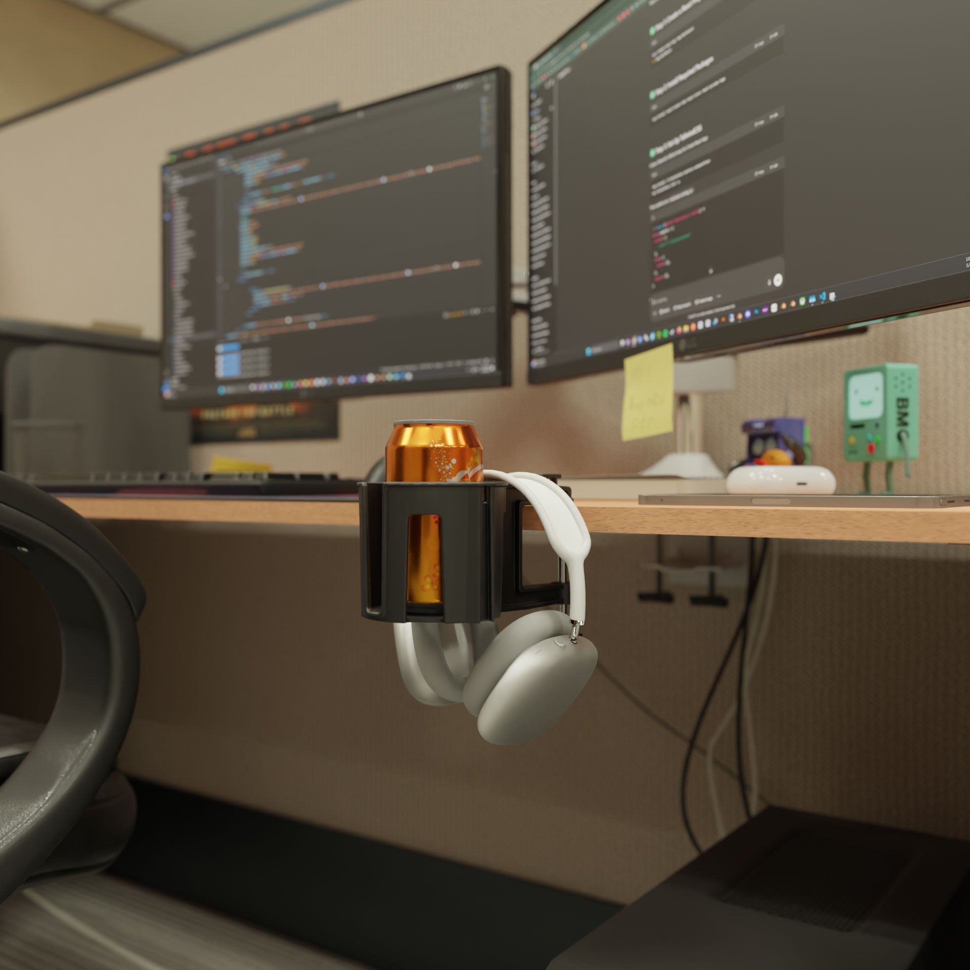 Desk looking more like a disaster zone? Between coffee mugs, headphones, and that one pen you can never find, clutter adds up fast—and so do the risks. One accidental elbow bump and your drink’s taking a dive straight onto your laptop. Cup-Holster clamps securely to your desk, clearing space and keeping your cup exactly where it belongs—out of the way, but always within reach. Clean, organized, and spill-free: just how your workspace should be.